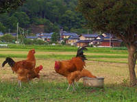 近所の酒屋さんに前から放し飼いにしてあるニワトリ。気になってちかよってみました。ニワトリは小さい頃うちでも飼っていましたが、普通の白いニワトリではないようで、一時期近所ではやった烏骨鶏でもない。。。聞いてみると、名古屋コーチンだって!焼き鳥では食べたことがありますが、目の前でみるのは初めてでびっくりしました。