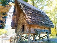 その帰り道、前から気になっていた 古代村という看板に誘われ、山の手に入りましたらなんとこんな家?倉庫?林業系の県の施設です。