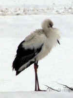 今日も雪の田んぼで寒そうなコウノトリ。首のまわりに毛皮をまいてるみたいでしょ!