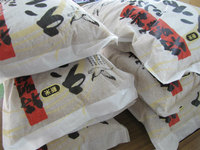 六方銀米はこんな袋を使っています。みんなでデザインの意見を出しあってきめた和紙のフルブレスパックといって、ほこり、虫、水濡れの心配ご無用の米袋です!かっこいいでしょ。これならギフトにも使っていただけます!