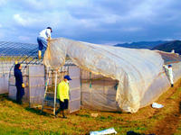 いよいよ、育苗(いくびょう)用のビニールハウスのビニールかけ作業の時期になりました。