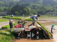 ひどい雨の日をのぞき、ほぼ毎日1ヘクタール以上の田植えを1ヶ月以上かかって植えます。