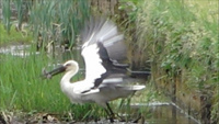 お母さんコウノトリが卵を温めているあいだの、お父さんコウノトリの餌取り画像をご覧下さい。一生懸命子育て中です!