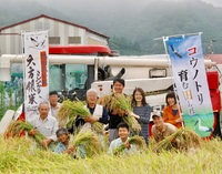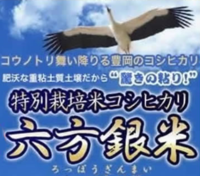コウノトリ舞い降りるコシヒカリ 六方銀米の稲刈りをはじめました。新米までしばらくお待ち下さい。