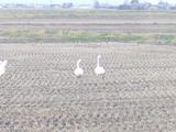 白鳥もシベリヤよりやって来て田起こしの終わらない田んぼで落ち穂等ついばんで居ます。