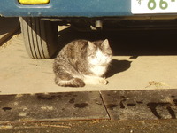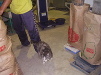 収穫作業も終盤に入って、昼は、刈り取り、夜は、籾すり作業、毎日、続いています。忙しいのを感じたのか、飼い猫がやってきます。