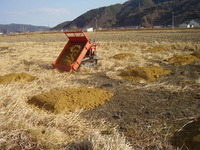 もみ殻を焼いてくん炭をつくります。水稲育苗の床土に混合します。健苗作りの一役です。