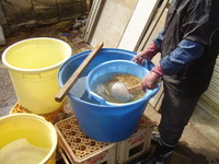 JAより、60度10分の温湯処理した、種籾がとときました。塩水選を行いみずに、種まきまで、漬けておきます。眠っていた、籾をゆっくり覚ましてやります。