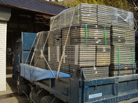 破損したり不使用になった、育苗箱ハウスビニール等。JA倉庫へ運搬して廃棄処理して貰います。今回は。古い育苗箱約290K運びました。