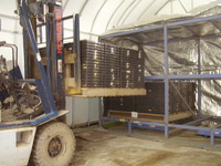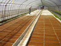 育苗機に3晩入れて発芽させて、3日めに出してハウスに並べます。この育苗機に1024枚巻きました。