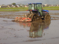 15年以上我が家の田畑を耕して来た、トラクターが代掻き中に破損したので、JAより代替え機を借りて最後の代掻きが23日終了しました。今降っている雨があがったら、今年の最後の田植え予定しています。