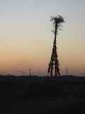 2008年の歳の瀬の夕焼けです。写真はどんと焼きの小屋の骨組みを撮ったものです。地域によっては「ひわの鳥」とも言うそうです。どんと焼きは、お正月が開けてから、しめなわ、お正月の飾り物をどんと小屋と共に燃やし、その炎でお餅を焼いて食べる行事です。このお餅を食べると一年間無病息災と言われています。岡野農園では、私が幼少の頃、ボーイスカウトに所属していたこともあり、それ以来父が小屋を立てるのを手伝っております。