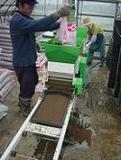 この培土を機械に入れるのが大変です。一日中袋に入った土を機械に補充し続ける作業です。父と二人で交互に行いますが、この作業は結構大変で「夕方には腕が上がらなくなる」と我が父はいつもぼやいています。。私もぼやきたくなりますね。