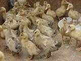 アイガモ農法の頼もしいすっけとたちです。 画像では判らないかも知れませんが、二種類の鴨の雛がいます。皆さん判りますか?