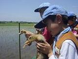 岡野農園でも、6月1日に地元のボーイスカウトの子供達によってカモ君達が放鳥されました。子供達は私の父から、お米の出来るまでの話やアイガモ君の田んぼでの役割などを聞き。いざアイガモ君とご対面です!