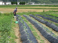 炎天下の中、約1反のサツマイモ畑の除草を行いました。