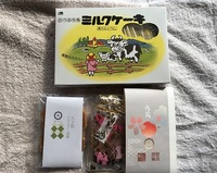 地元、渡辺製麺社製の「ミルクケーキ」と信濃ノ國 老舗菓子 九蔵 お菓子をプレゼント中です。