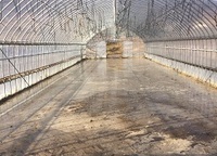まずは苗間作り、苗床をなるべく水平にするため、育苗ハウスに水を入れ、シロカキします。均してから再度苗床を一定にするため、土を動かします。