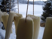 | 風と一緒にたたずむ景色の「雪中大根」干し |