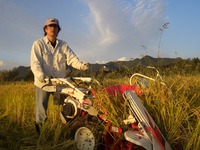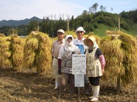 | 自然乾燥米の刈取り始まる |