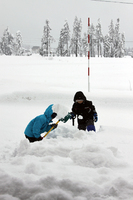 取り合えずかまくらを作ろうと出て行きましたがまだこの量ではかまくら作成は無理でしょうね〜(>_<)