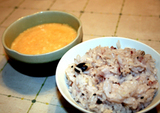 ご飯も十穀米を使うと体にも良いですし食感も良くなりますよ。 ご飯が赤いのは赤米入っているからですね写真だと赤飯にみたい見えますね。