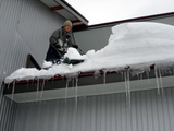 積雪は1m50cm程になったので屋根も「雪下ろし」しています。はっきり言って重労働ですね、その中でも楽しみを作ります。ビールを持って屋根に上がるのです、まずビールを適当なところに投げます、そうするとビールは雪に埋まって冷え冷えになります、そして雪下ろしもビールの所まで進むと雪で冷えたビールを頂くことが出来ると言うことです。屋根に上がって汗をかき、最高の景色でビールが飲めるのですよ、最高の贅沢ですね、まあ最高の状態でビールが飲みたくて雪下ろし、していると言うことも言えますが・・・。