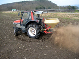 今日は朝から晩まで肥料を散布しました。写真のような感じです、後ろから出ている棒が1分間で530回左右に動きますかなりの高速で肥料を飛ばしていきます。