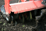 トラクターで田打ちをしています。トラクターの爪の部分ですかなりの高回転で土を起こしていきます。トラクター頑張れ!深さは15cmが目安ですが理由をダンナに聞くと意外に奥が深かった!ダンナ談「稲の根は深さは15cm程で大丈夫なのだが、小出家はもう少し深く打つ!妙高の田んぼは水持ち(水を入れても直ぐに減ってしまう)が悪いので少し深く打って水を入れて代掻きの時にトロトロ層の部分を多くしてあげると多少水持ちも良くなるんだよ」との事・・・。私「水持ちが悪いと何が悪いの?」ダンナ「水持ちが悪いと言うことは田植えした後、絶えず田んぼに水を入れなくては行けなくなると、稲の生育も遅くなるし・・・水持ちが良すぎるのも問題!何日も水が減らないと水が腐ってしまうやっぱり稲も美味しい水が飲みたいんじゃないの?丁度良いところが難しいんだよ!」