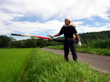| こだわりの栽培除草機押しています。 |