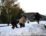 初雪の嬉しさで子供達は雪合戦中