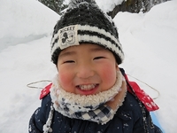 長男は、寒さにも負けず雪遊びできて大喜びです。