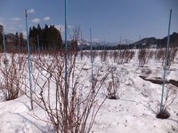 ブルーベリー畑には、いつもより雪が少なく、早く剪定作業を始める事が出来ました。