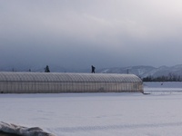 例年なら、何度か自宅の屋根の雪下ろしをしますが、今年は雪が少なかったため一度も下さずに済みました。そのかわり、ビニールハウスの補修をしに上りました。うっすらと見える吾妻連峰、天気が良いと天元台スキー場もはっきり確認できるのですが(~o~)