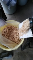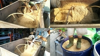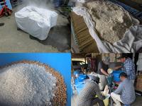 攪拌機でもみ殻・米ぬか・糖蜜・EM菌などを混ぜ合わせ、プラスチック