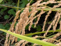 毎年、稲木を建て天日干しのお米を収穫していましたが、台風12号と15号で稲木が倒れ稲刈が遅くなるのでコンバインで稲刈しました。「天日干し」でないお米を販売するのは初めてです。これが普通なのでしょうが私にとっては一大事です。野菜に使う稲わらも取れませんでした。でも、稲木に稲を掛ける前だったのでお米は大丈夫でしたが、とても残念でした。来年は、どんな年になるか分かりませんが今までのような稲木を建て「天日干し」を食べて頂けるように頑張ります。今年は普通のお米でよろしくお願いします。