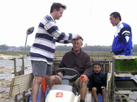• 消費者のイギリスの方も親子で田植え機の操作を教わっています。